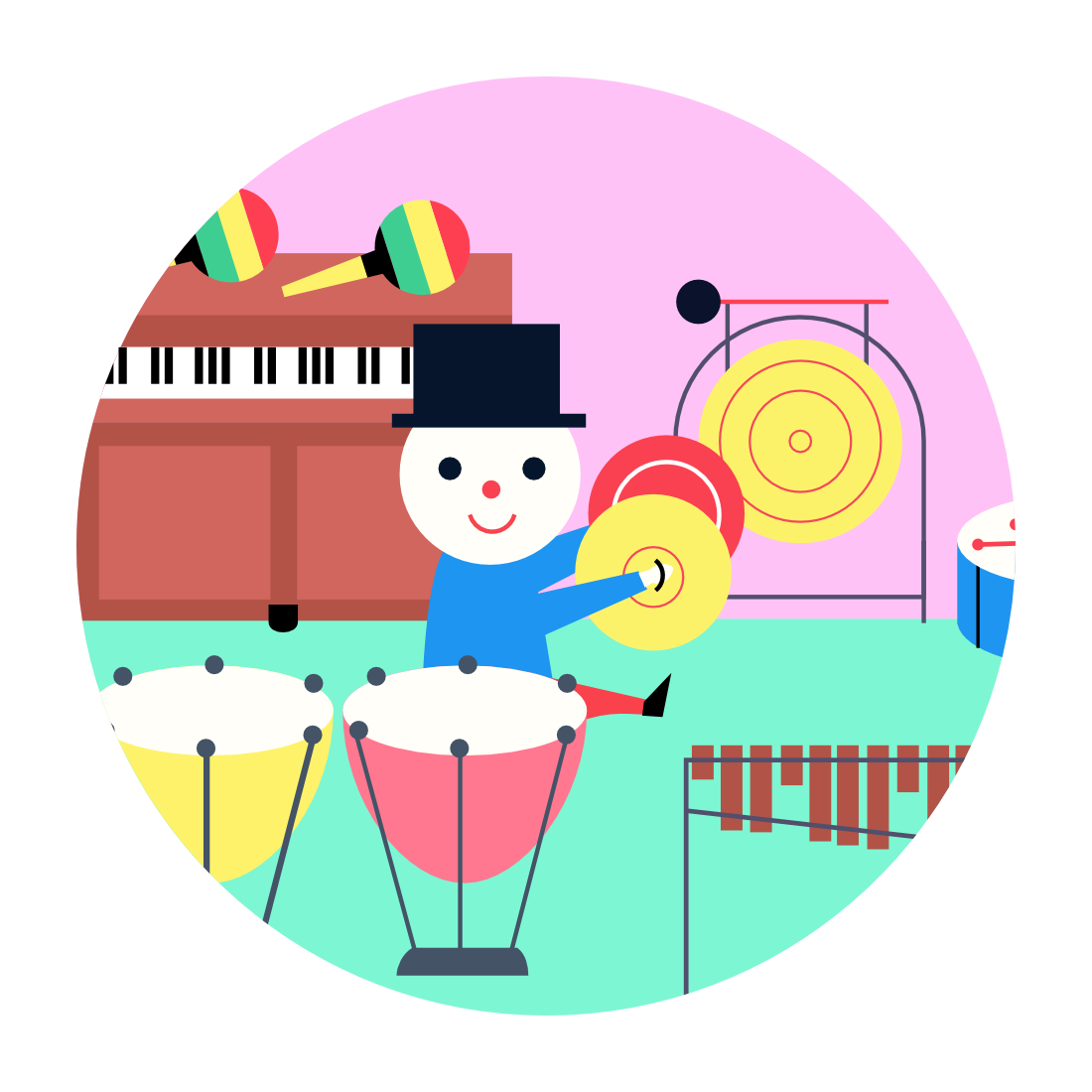 Schlaginstrumente Klang kennen zu lernen und eigene Rhythmen darauf auszuprobieren: Pauke, Trommel, Xylophon, Triangel,